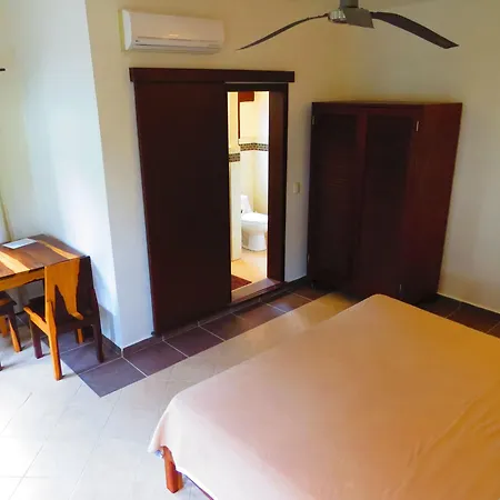 Climatizador, además de minibar, proporcionan comodidad en la habitación en el Xibalba Hotel Dive Center Tulum. El baño está equipado con un inodoro separado y ducha.